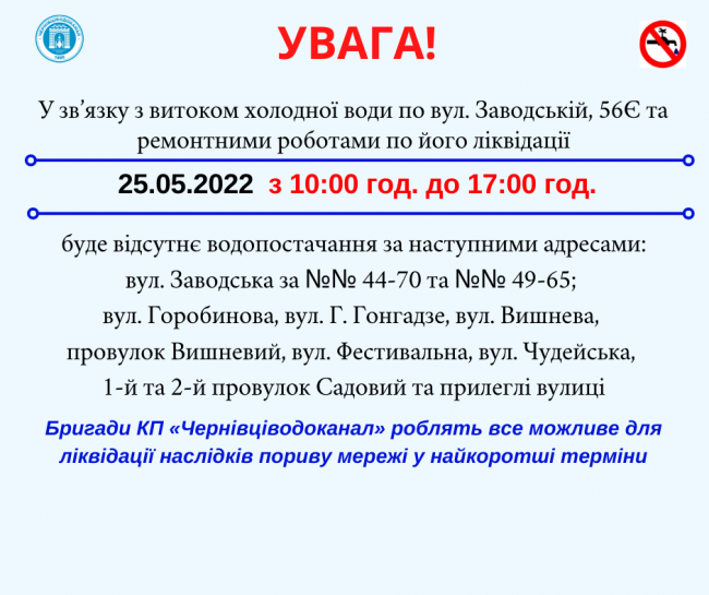 До уваги! Обмеження водопостачання (вул. Заводська)